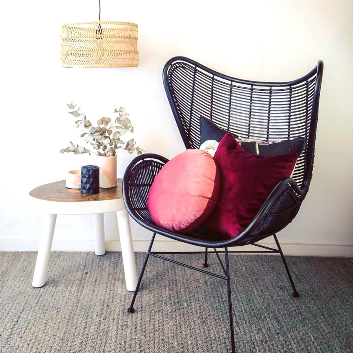 We'll review the issue and make a decision about a partial or a full refund. Hand braided black painted rattan chair. Brafab swing egg chair, hammock chair, hanging chair,aluminum frame and uv resistant cushion with steel stand, indoor outdoor patio porch lounge wicker rattan hand made chair 350lbs capacity. The woven hanging egg chair in the beach house on grace & frankie is to seen in thei bohemian meditation room.